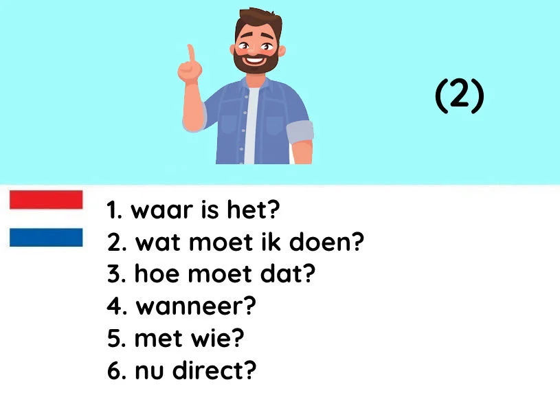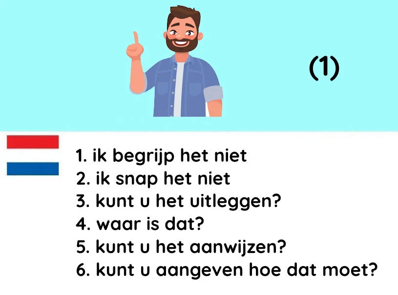 Asking for help is perhaps the most important part of this course. An extensive survey shows that many people from countries such as Poland, Romania, etc. are very afraid to ask for help. In fact, the survey showed that this was the main topic causing problems. There is fear of losing control and people are afraid of losing their jobs. The image people have about care does not correspond with how care is organized in the Netherlands. This image is formed on the one hand by experiences from the (former) home country, and on the other hand on the basis of rumors that are spread. The same report points out how important it is to learn more Dutch.In this section we provide some phrases that can be used.
